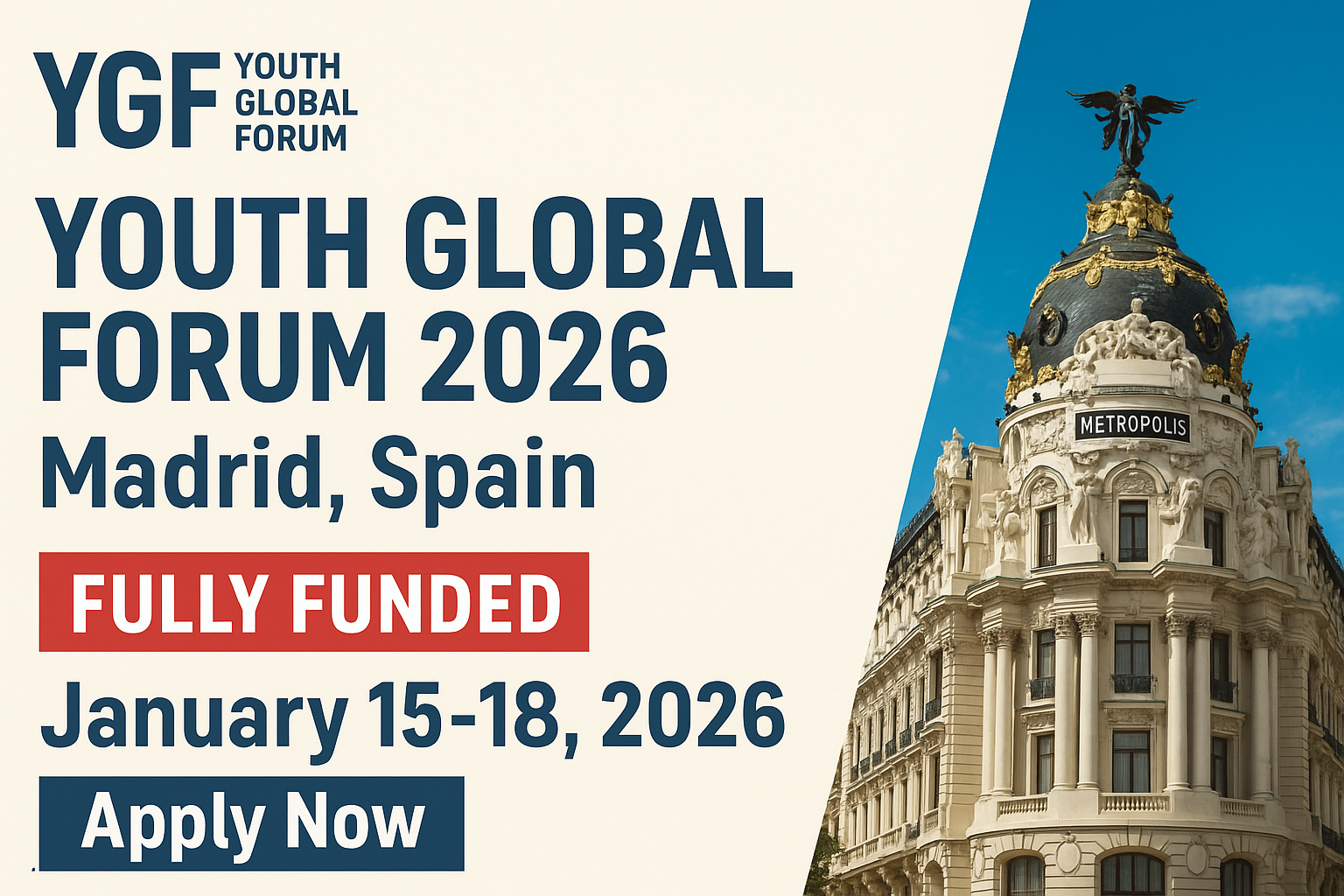 Applications are now open for the Youth Global Forum 2026 (YGF 2026) โ€” a prestigious international gathering set to take place in Madrid, Spain. The forum brings together young leaders, innovators, and changemakers from around the world to discuss global challenges, exchange ideas, and develop sustainable solutions for the future.
